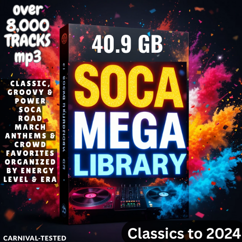 This is a massive, DJ-ready Soca collection featuring Over 8,000 high-energy tracks from classic to modern eras. Perfect for Carnival, fetes, parties, road march sets, and non-stop energy mixes.